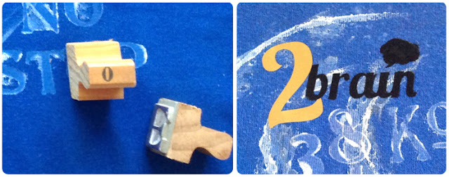Adoramos las tipografías, las letras dan mucha personalidad a las cosas, describen sentimientos, hablan, explican… Así que vamos a poner algo con unos tampones que tenemos de madera. NO CORRAS STOP (a nuestro amigo le gusta la velocidad y no estará mal darle un consejo). Y nuestra marca, fírmalo.