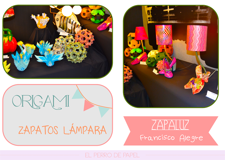 Me gustaron muchísimo sus zapatos lámpara desde que llegamos y las figuras de origami no se quedaron atrás. En nuestra primera vuelta por la Sala Vip del Bernabeu donde se realizó el evento, ya me quedé mirando con curiosidad sus trabajos. Pero fue después del Taller de Lomografía cuando el estupendo creador de estas obras de arte habló con nosotros y pudimos verlo en acción, en pleno origami, ¡genial!