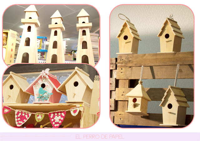¡¡El paraíso!! Es que había de todo... kits para hacer tu propia fofucha, un montón de papeles de scrap, brands, sellos, tintas, washis, casitas para pájaros de madera... faros... ¡¡me encantó!! Estuve preguntando por el cartón laminado para cartonaje y el chico, muy amable, me dijo que en esos momentos no tenían, pero me dio su email para que le escribiese cuando lo necesitase. ¡Genial! Se terminó comprar online y pagar unos gastos de envío desorbitados.