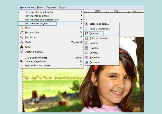 1.- GIMP también nos ofrece la posibilidad de colorear totalmente nuestra imagen, para ello vamos a