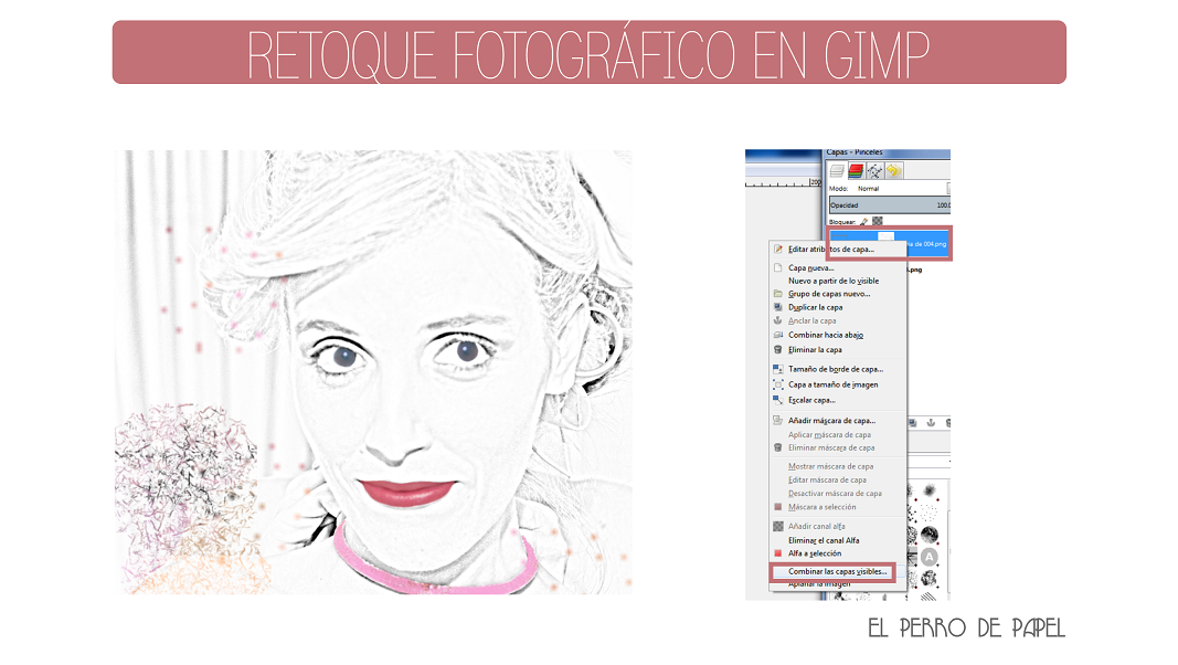 5.- Aceptamos y ya tenemos nuestra fotografía tipo dibujo con color. ¡Me encanta como queda! Ahora solo falta combinar las dos capas. En el menu de la derecha, pinchamos en la primera capa con el botón derecho del ratón y seleccionamos "combinar las capas visibñes".