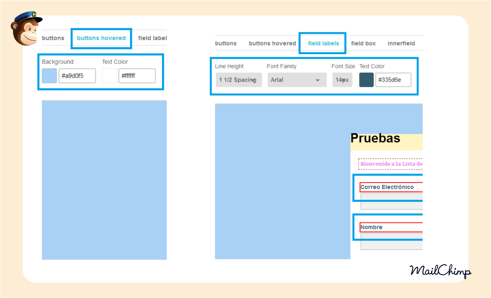 Field Labels --> el formato de los diferentes etiquetas de nuestro formulario (correo, nombre, ...)