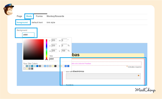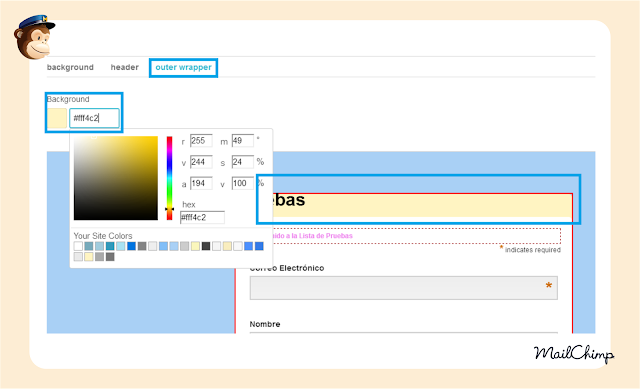 8.- Podéis añadir el mismo color que el fondo de vuestro Blog, para mantener vuestra imagen corporativa, o buscar el color que más os guste con la ayuda de esta web.
