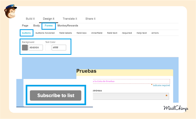 Buttons --> Formato del botón de suscripción que aparece al final del formulario.