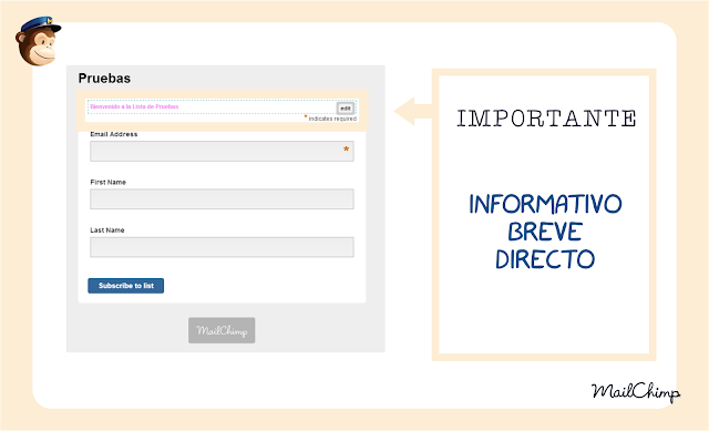 Es MUY IMPORTANTE cambiar el texto informativo que hay justo debajo. Será lo que anime a nuestros posibles suscriptores a continuar con su suscripción o salir del formulario antes de hacerlo.