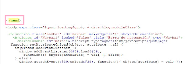 EliminarPegamos nuestro código modificado justo encima de < / head >