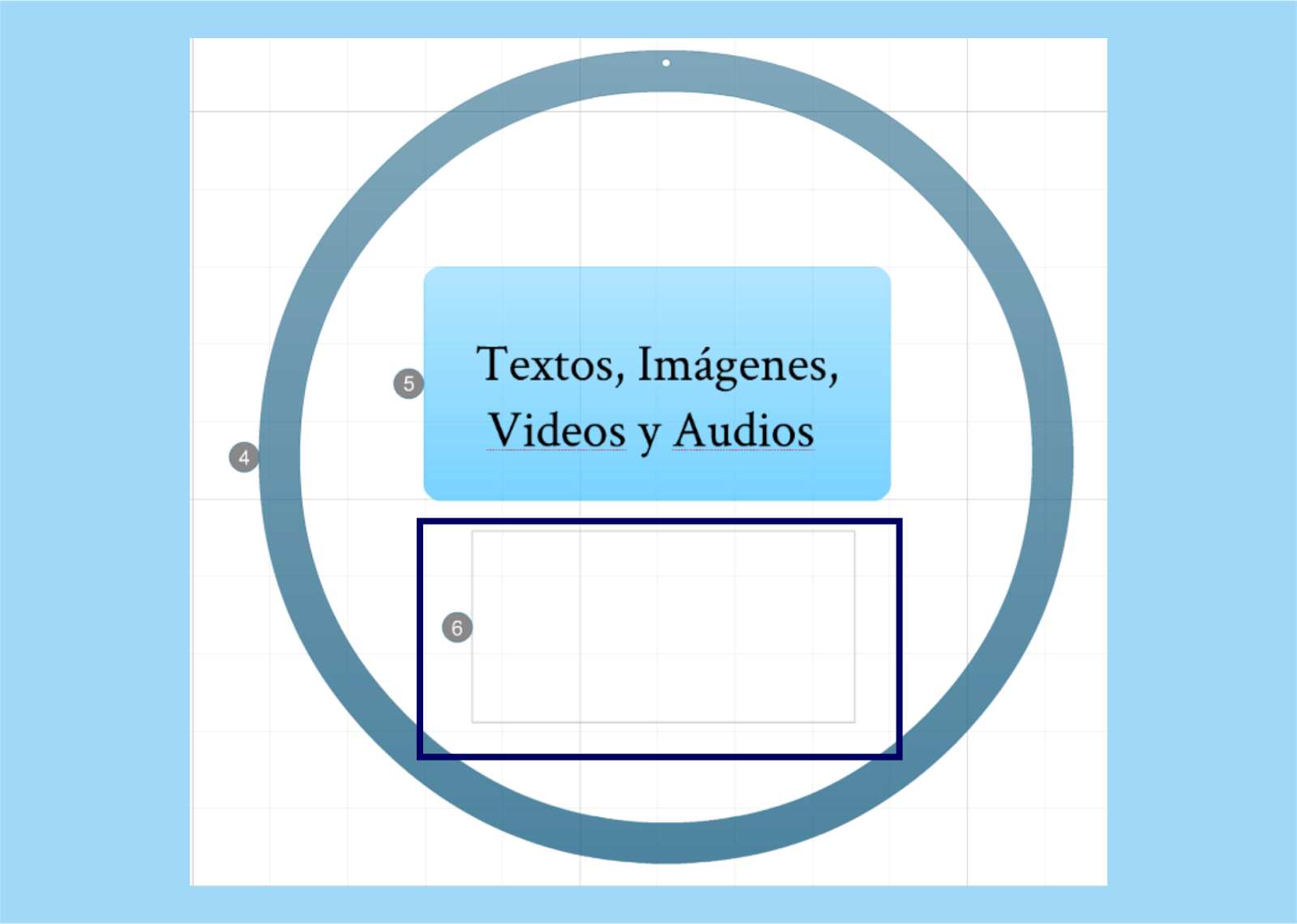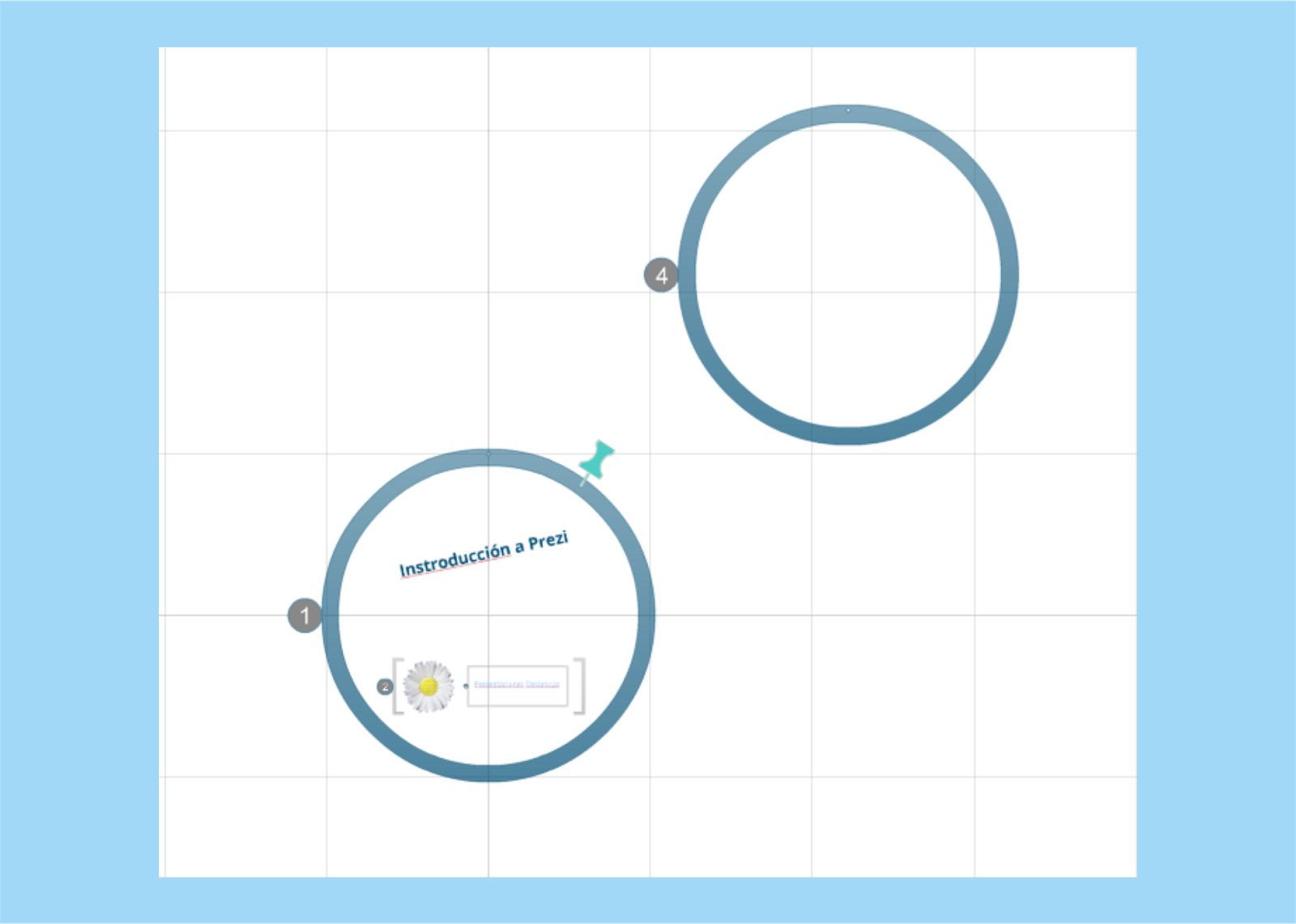 2.- Lo colocamos a cierta distancia del primero. Si os fijáis, aparece el número 4. Esto quiere decir que es la cuarta parada que realizará la cámara de Prezi cuando estemos en el modo de vista dinámica. El orden puede cambiarse, como veremos más adelante.