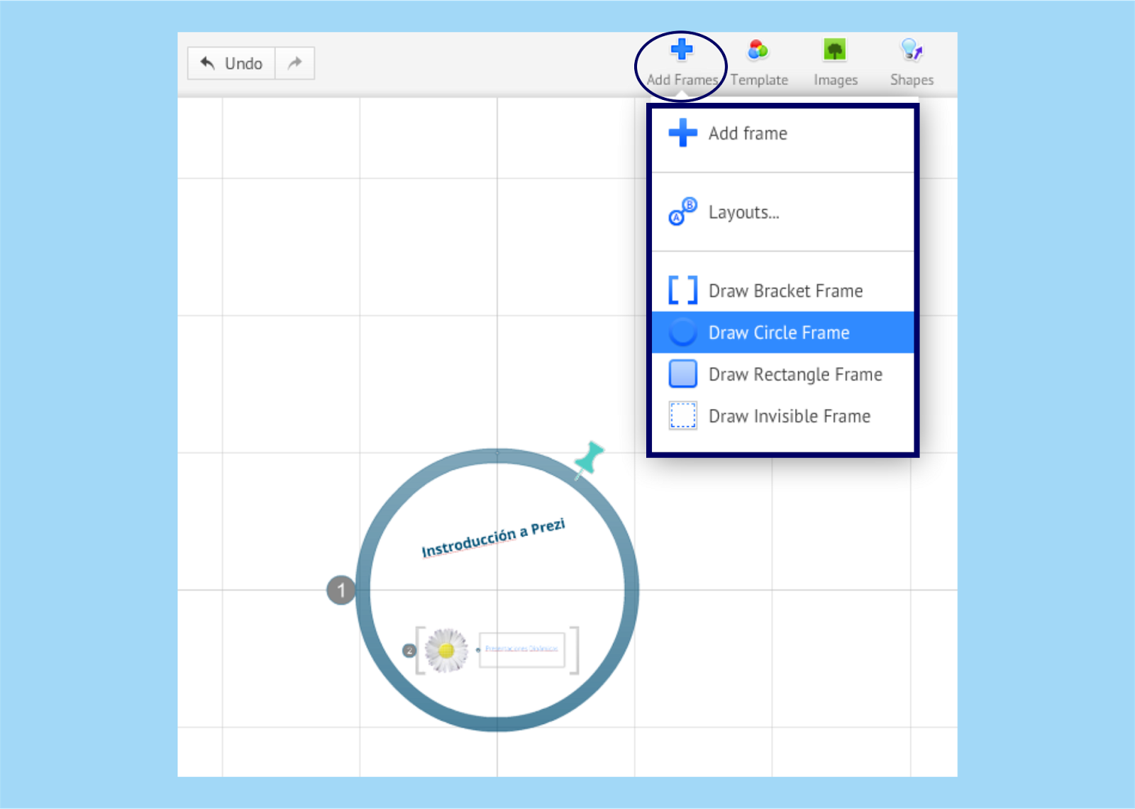 1.- Ahora vamos a añadir una segunda. Para ello, pinchamos en Add Frames y seleccionamos el marco con forma de circulo azul.
