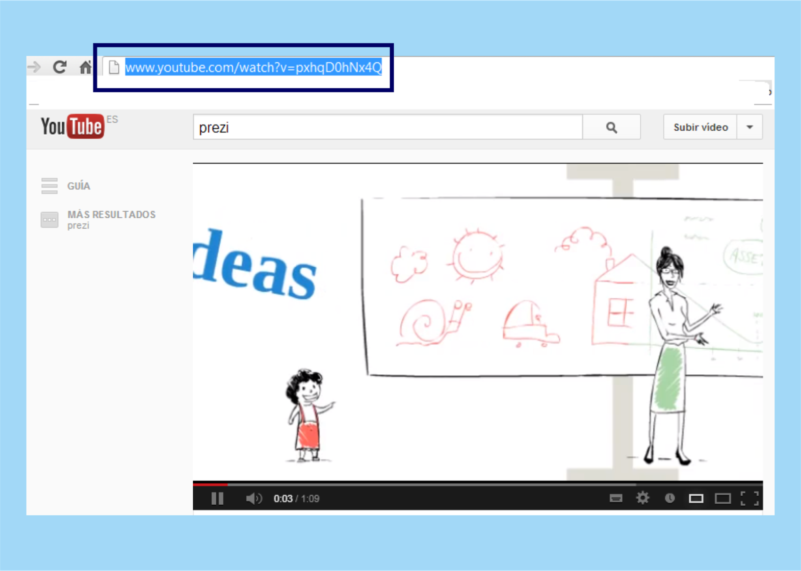 7.- Vamos a insertar un video de Youtube. Para ello, abrimos youtube, buscamos el video en cuestión y copiamos el enlace que nos muestra el navegador.
