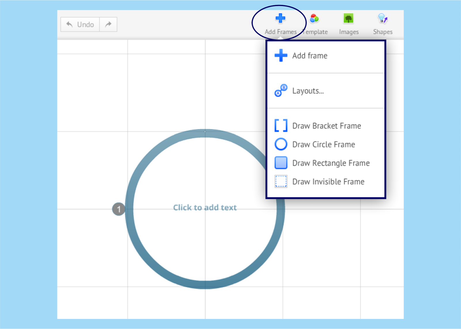 Add Frames -> Aquí aparecen los marcos predeterminados que podemos usar para crear las diapositivas. Hay varios modelos y además, podemos usarlos como submarcos, como veremos en la práctica que tengo preparada para aprender a manejar las opciones básicas de Prezi.