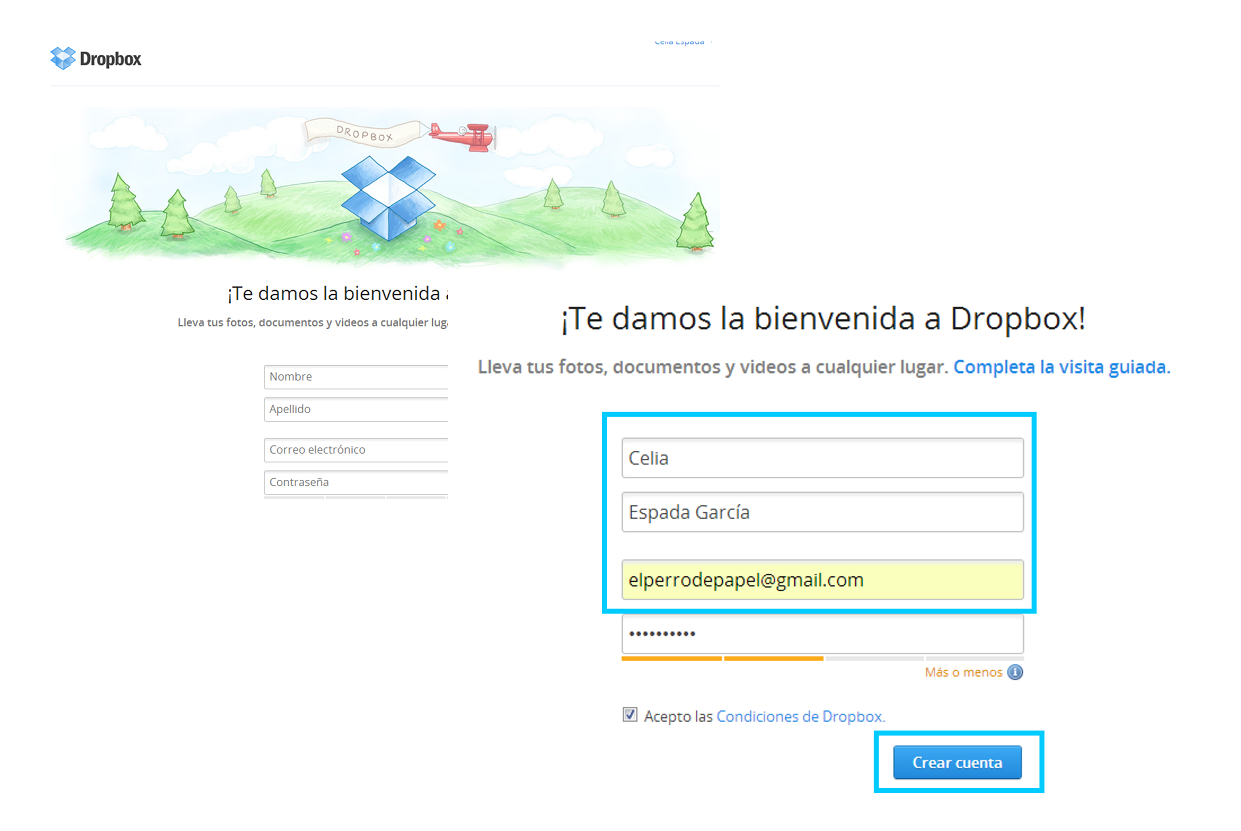 Si entráis desde mi enlace os aparecerá esta pantalla. Sólo tenéis que escribir vuestros datos de usuario. Dropbox os enviará un email informativo una vez lo hayáis hecho.