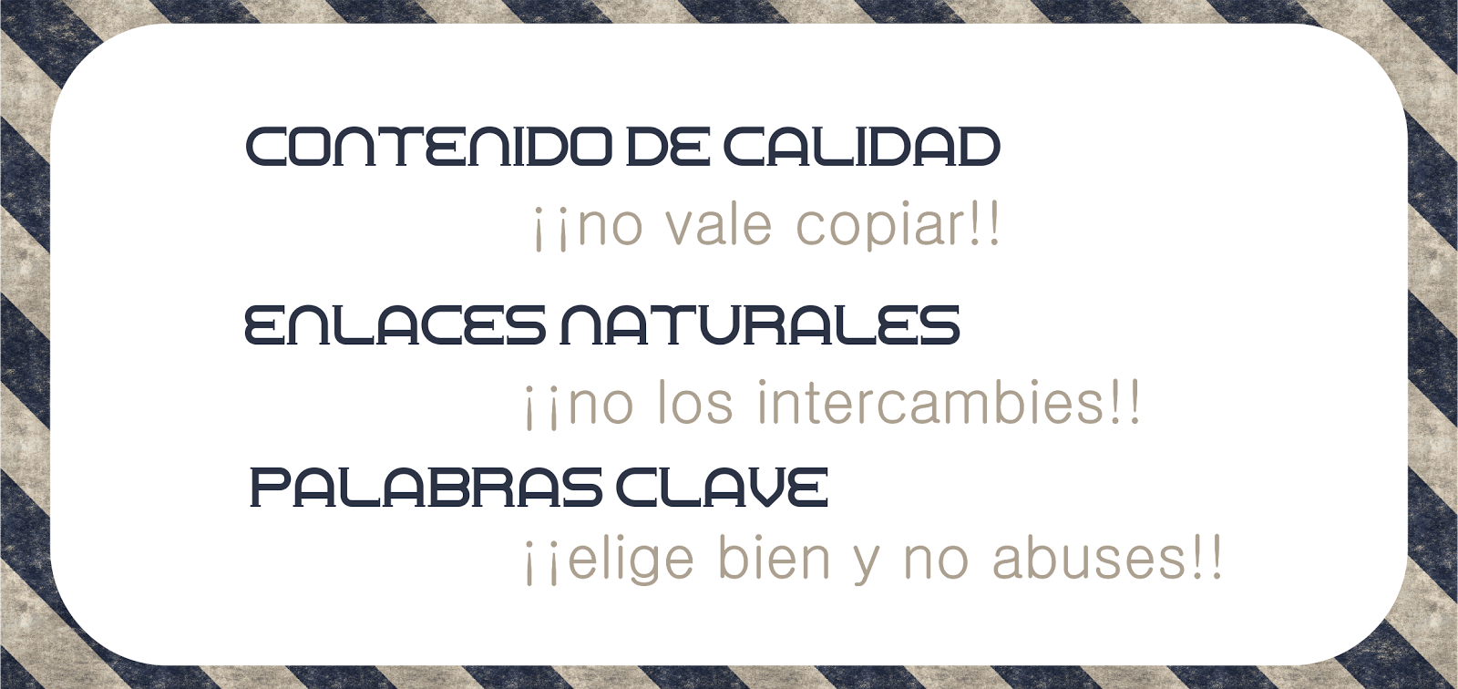 el volumen de palabras clave en cada entradas no supere el 10 o 20% del total, osea, que si nuestra entrada tiene 100 palabras lo aconsejable sería añadir una sola palabra clave. Como veis, ¡es poquísimo! Por lo cual, tenemos que esforzarnos en crear contenido de calidad (recordad el punto Contenido). En el siguiente tutorial veremos como etiquetar dichas palabras clave para que sean reconocidas más fácilmente por el robot de Google.