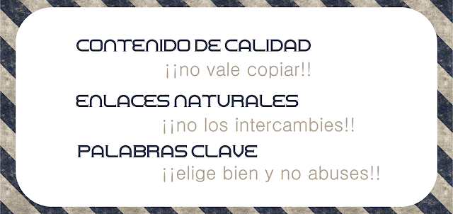 Si nos hemos trabajado el tema del contenido, cuidando cada entrada, añadiendo nuestras propias experiencias, opiniones y fotos... es muy importante no caer en la tentación del intercambio de enlaces a lo loco. Si nuestro blog habla de moda... poco nos ayuda que nos enlace un blog de cocina. Buscad blogs de temática similar e intentad que vuestros enlaces sean naturales, dentro de lo posible. Con naturales me refiero a olvidarse del blogroll... Si llenamos nuestro blog de enlaces, Google puede catalogarnos como una granja de enlaces y también está penalizado.