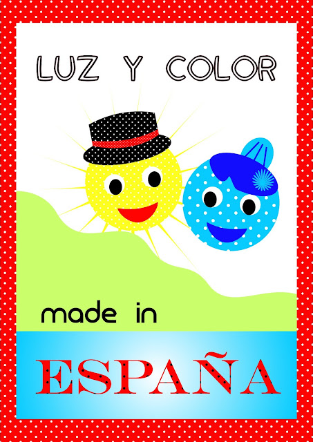 En la lámina he querido reflejar lo que a mí me transmite nuestro país: Luz y Color. Manteniendo el color rojo y el amarillo, por supuesto. ¡Y los lunares de las típicas sevillanas andaluzas! Además, he vestido a mi sol y luna especialmente para la ocasión. ¡Les faltan las castañuelas para empezar a bailar sobre el mar! Justo en ese momento en que ambos se encuentran, antes de que el día de paso a la noche.