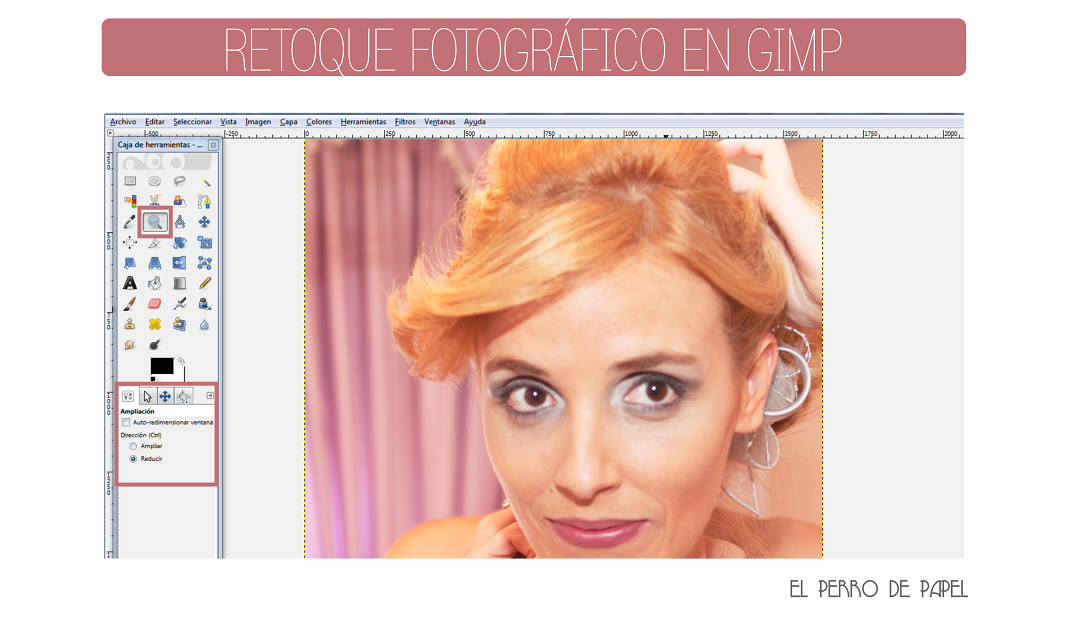 1.- Abrimos la fotografía con la que vamos a trabajar. Con la herramienta lupa podemos aumentar o disminuir el zoom, muy útil cuando queramos retocar detalles.