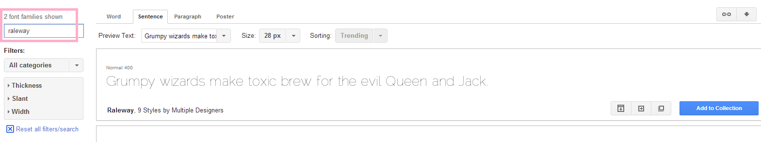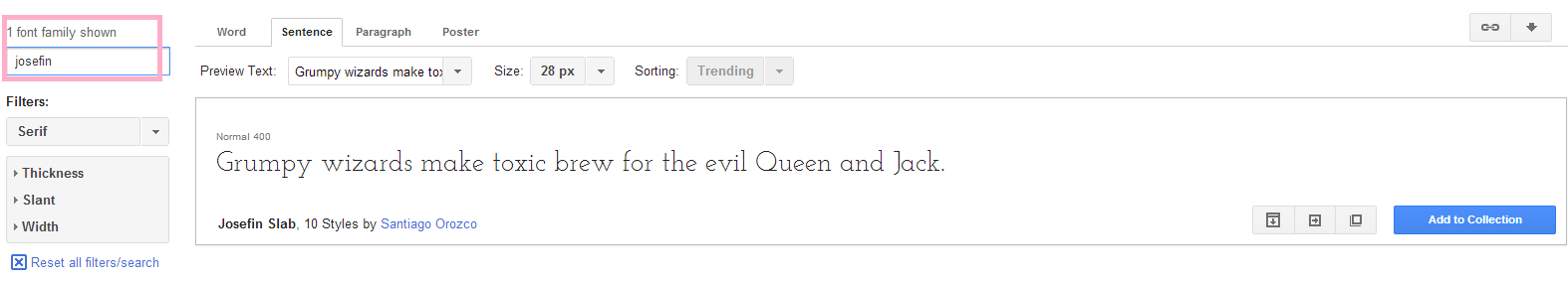 7.- Cuando encontremos una que le vaya bien a la estética de nuestro blog pulsamos en Add to Collection, a la derecha del tipo de letra elegida.