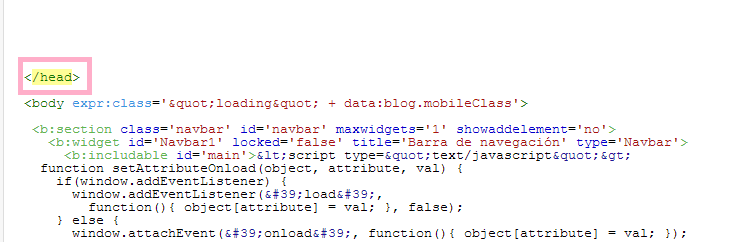 EliminarPegamos nuestro código modificado justo encima de < / head >