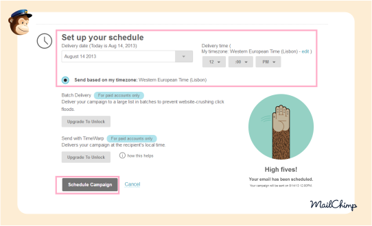 25.- Elegimos el día y la hora.Y pinchamos en Schedule Campaign. ¡Hecho!