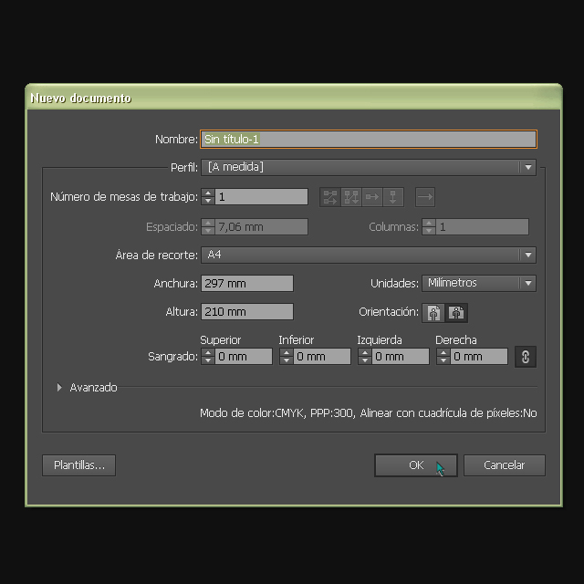 3. Dejamos los valores predefinidos del programa para un archivo A4 y pulsamos OK.