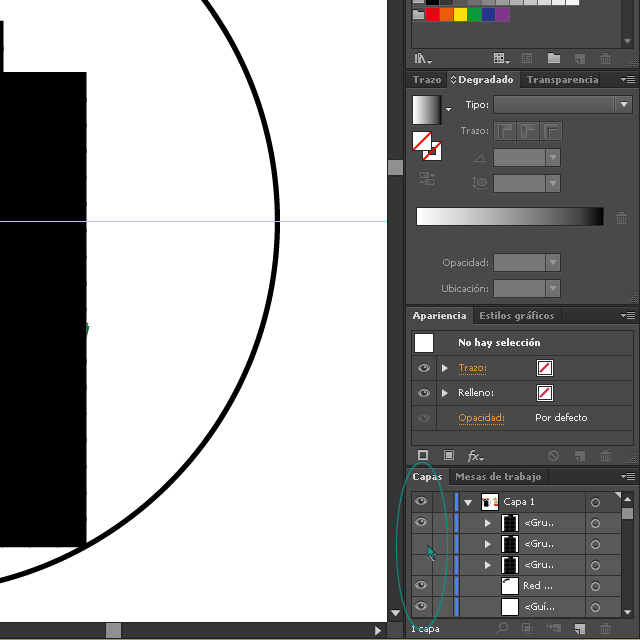 Y hacer clic sobre el trazo del círculo concéntrico, veremos como desaparece el color del trazo y podemos empezar a escribir.