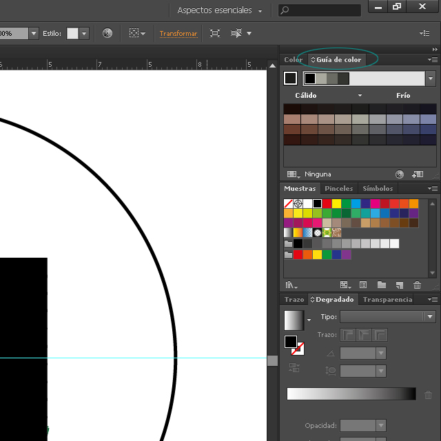 10. Cuando piensas en los colores que usar y no estás muy inspirado Illustrator tiene una ayuda que es la guía de color, donde al escoger un color el programa directamente nos muestra diferentes paletas de color combinables.