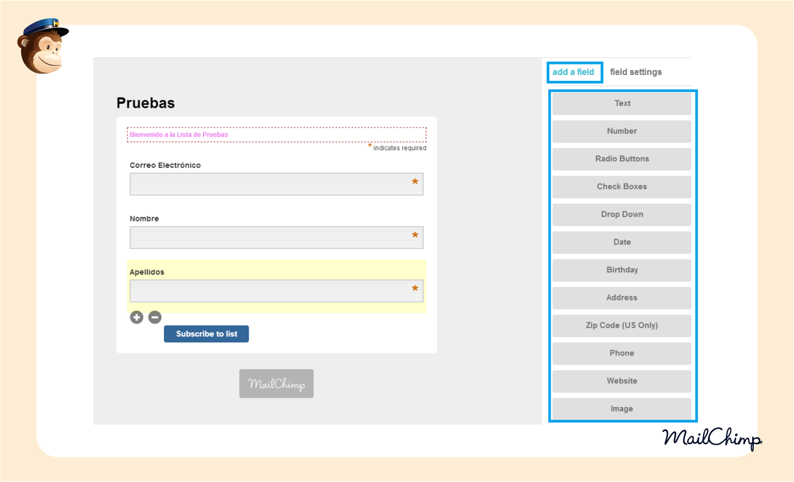 Poner como obligatorio el campo Nombre es muy efectivo a la hora de enviar emails personalizados llamando a cada suscriptor por su nombre. Es un dato importante a tener en cuenta mientras construimos nuestros formularios de suscripción.