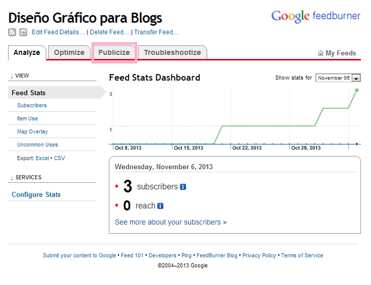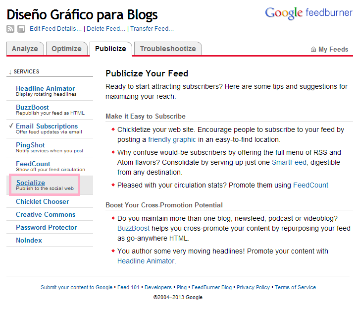 Pero hoy vamos a hablar de como hacer que las entradas del blog se compartan automáticamente en Twitter. La red social para convertir nuestro contenido en viral por excelencia. Para seguir este tutorial, necesitas tener activo feedburner, es muy fácil, si tienes la casilla de suscribirse a tu blog por correo electrónico, se te ha configurado automáticamente.